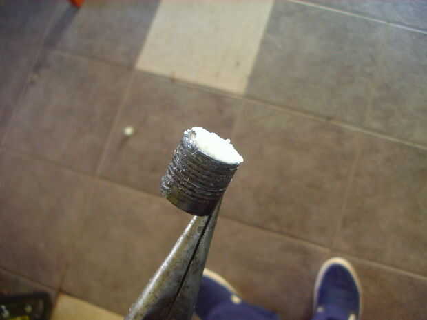 Nuestro megáfono debe tener un mango para un agarre cómodo. Con este fin, más fácil que será hacer cuatro agujeros en uno de tres aletas, utilizando un trozo de tubo metálico, calienta en la llama del gas. Obviamente, cada agujero es poner un dedo. Luego, usando un alambre caliente o una soldadura de la lata, se me quitan de la aleta de la parte que no es necesario.