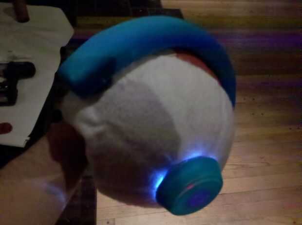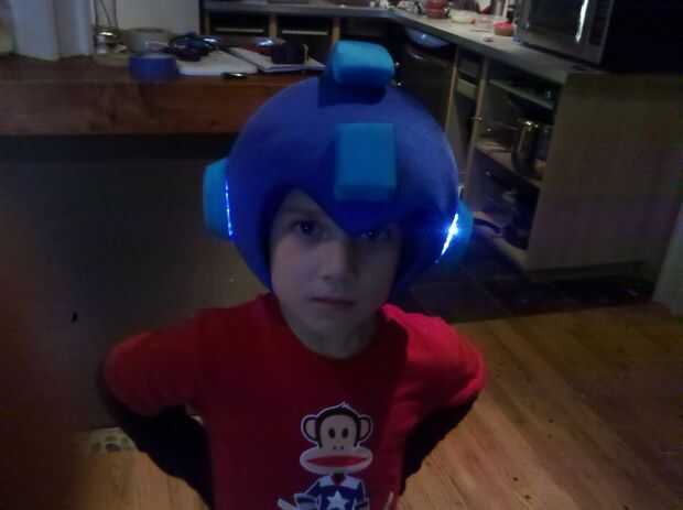 El casco de Megaman pondrá a prueba su paciencia. Ser muy cuidadoso corte la bola, algunas pelotas son más fáciles de cortar que otros. Dibujar la plantilla con un marcador lavable primero luego permanente cuando su listo para cortar. Las orejas deben cortarse según a las luces de disco que utiliza. Quité la cubierta transparente de la luz del disco y pintados de rojo. Entonces compré un Garnier Fructis crema hairgel. Las tapas funcionan perfectamente para los oídos. Luego perforé un 1" agujero en la tapa de la luz ser empujado hacia adentro. Enrollar el plástico con la tela con la cinta y el pegamento caliente. Luego coloque el plástico a la luz modificada utilizando la pistola encoladora. Más fácil decirlo que hacerlo, arruinado uno antes de que lo conseguí! Las orejas deben fijarse al casco a menos que usted puede conseguirlos ajustada firmemente. El casco estaba envuelto en cinta del pato, luego cubierta con un fieltro, y por último la tela se estira sobre el casco. La tira de estilo espartano fue realizada utilizando la espuma, construida varias veces y la envolvió en tela antes de colocar el casco.