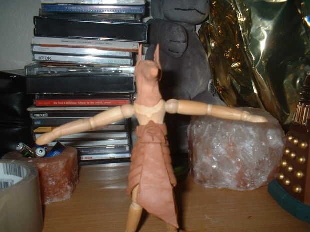 heres un megazord de mmpr im trabajo, mal actualizarla cuando haya terminado y pintado, tan solo para llenar espacio hasta entonces, heres un manniquin de artista que va a ser un ranger verde, he utilizado la arcilla para crear un escudo en el pecho. He utilizado el mismo tipo de manniquin y arcilla para hacer un anubis que casi ha hecho, ive también hizo morfo, monedas de poder y talismanes de magik, la arcilla es maravillosa.