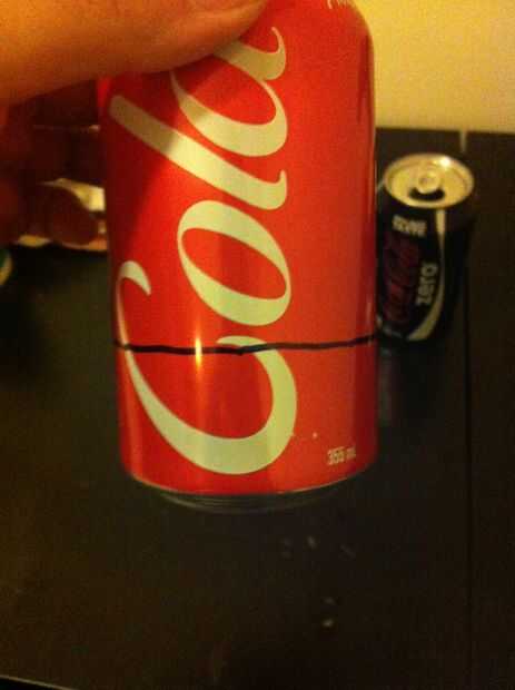 Primero en una puede que desee quitar la ficha. Y en pueden 1 1/2 pulgadas desde la parte inferior. Girar sobre que puede y usar el cuchillo x-acto para marcar la parte inferior de la lata. Luego utilice pinzas para golpear hacia fuera la parte inferior y sacar las piezas. Ahora en la otra lata, la marca 3/4 de pulgada de la parte inferior.