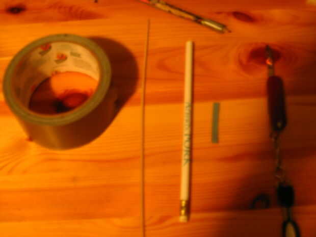 primero necesitas un lápiz, un scewer, alguna cinta de pato, un taladro y un cuchillo de bolsillo.