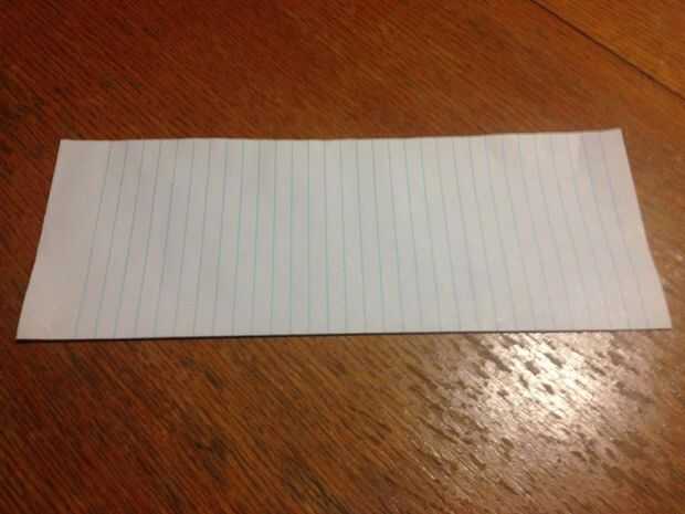 Primera: Doblar el papel exactamente por la mitad (a lo largo del lado largo). Llamaremos a este redil "la línea de base".