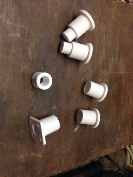 He hecho algunos bujes en OpenScad de algunas partes comunes como un SO-239 y algunos postes. Cogí un montón de cajas diferentes con diferentes configuraciones y algunos covers. Utilicé material PLA y parece adherir bien a las cajas con el cemento de conductos de PVC estándar.