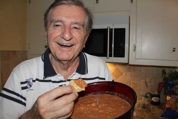trajo a un desafortunado accidente me y mi tío-abuelo Bernie juntos extendiendo una noche estancia a 3 por semana uno (no te preocupes, él está bien). Sin embargo, de estos tiempos me enseñó algunas de las cosas más sorprendentes.  ¿Aprendí de él muchas nuevas recetas, cómo mezclar algunas bebidas ('Oscuro y tempestuoso' alguien? No puedo, pero sé cómo hacer una media de uno... o lo oigo) y en particular su famoso frijol salsa.