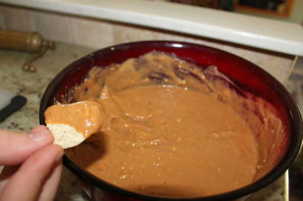 Una receta alternativa posible está utilizando frijoles refritos en vez de los tradicionales (no sé lo que haba que utiliza). De esta manera salió un poco más naranja con un sabor ligeramente diferente. Podría ser sólo la marca, pero sin duda había una diferencia. También en este intento se utilizó una salsa caliente y añade una gran cantidad de Chipotle Tabasco para darle una buena quemadura.