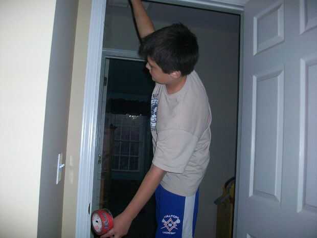cuando alguien abre una puerta algo Mieda caerá sobre ellos.Paso 1: una primero tome un pedazo de cadena, una caja o cubo, alguna cinta o prestick y corce algo de miedo o de agua.Paso 2: dos pegue un extremo de la cuerda en el medio de la caja de cub