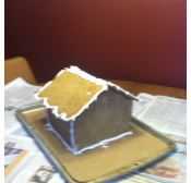 1. Comience con el techo. Debe tener más que suficiente royal icing izquierda en su bolsa Zip Lock