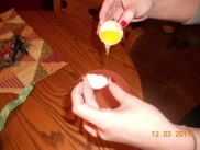 1. en un recipiente separar las yemas de las claras de huevo.  Esto puede hacerse mediante la división de la cáscara de huevo por la mitad luego transferir la yema de huevo entre las dos cáscaras hasta que ha caído la mayor parte de la clara del huevo en el recipiente pequeño.