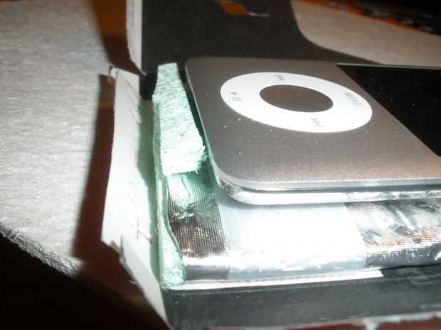 saqué una baraja de cartas y ahuecado un espacio interior para mi Ipod Nano.Luego montar el Ipod dentro y había montado en una tarjeta en la espalda y uno con un agujero de observación en el frente...Todavía puede utilizar la rueda de clic y es fácil