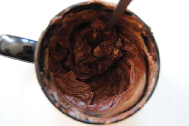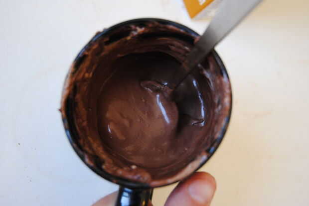 A continuación, agregar crema hasta el punto medio, una pequeña cantidad en un momento. Asegúrese de que usted este mezcla muy bien, porque de lo contrario se obtendrá trozos de chocolate. Agregar crema y mezclar hasta lograr la consistencia de pudín.