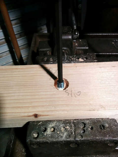 3. Taladro por-agujero del diámetro correcto para el inserto roscado (yo usé 5/16") en el centro del agujero de alivio