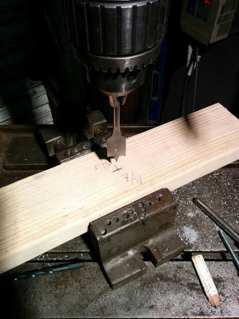 2. Un alivio para la cabeza del tornillo 1/4-20 con un 7/8 broca de paleta (o equivalente) a 1/2" profundidad del taladro