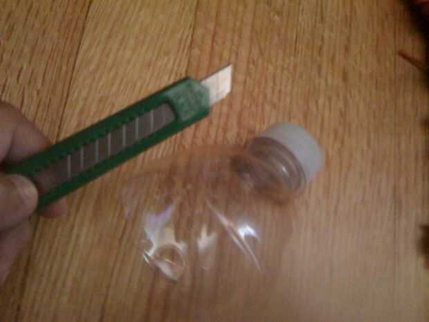 así que, vamos a ponernos manos a la empresa. es necesario cortar la parte superior de la botella de agua en su parte más ancha, pero como pronto sa su curva dejó de tapa. Deseche la parte inferior. debe montar snuggnly en can.put de soda al lado, no lo necesitamos ahora mismo!