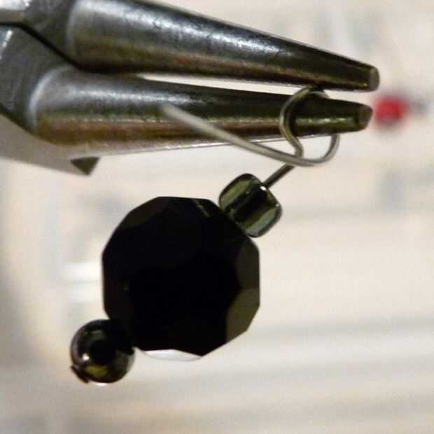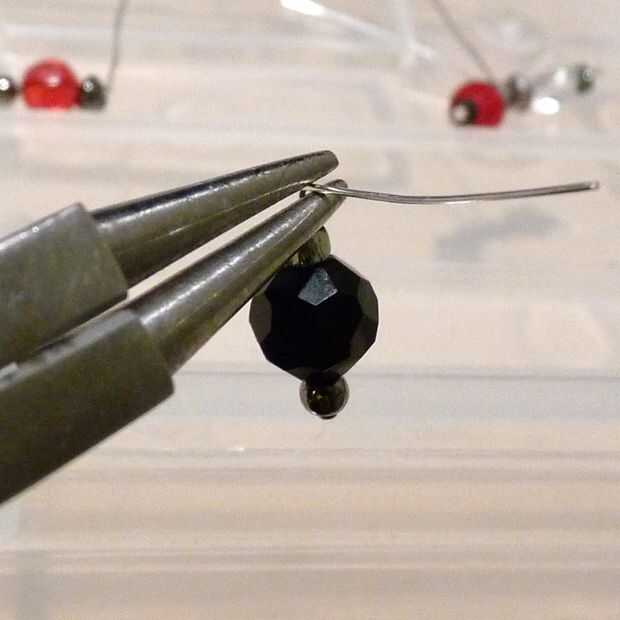 Doblar la cola del headpin en ángulo recto, 2-4mm sobre la parte superior de las cuentas (s) con pinzas de punta plana.