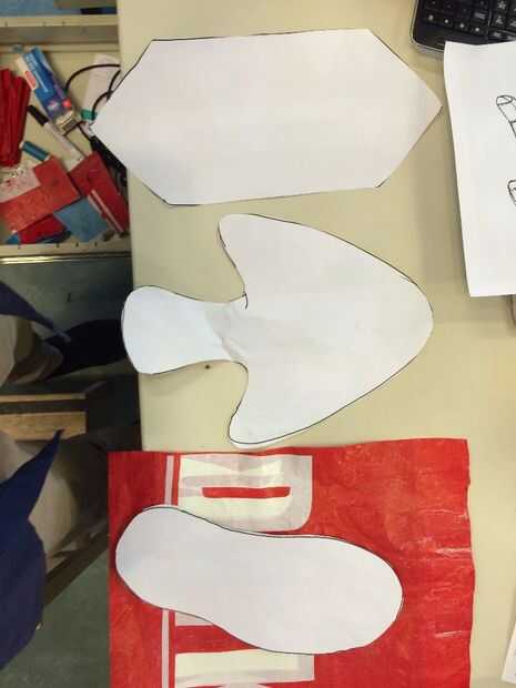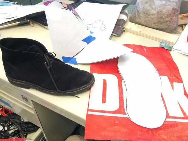 Los patrones en la imagen se asemejan a las piezas de gamuza que es la bota desierto de. Debe hacer estas y luego prueba con cinta adhesiva los juntos y ver si cubren sus zapatos.