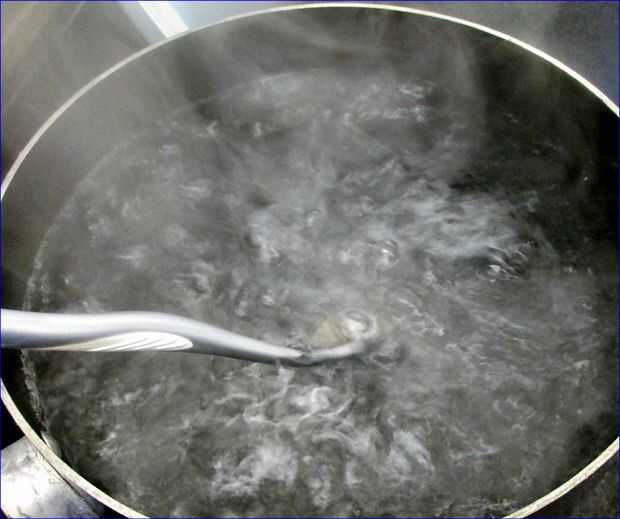 Una vez que el agua se obtiene hirviendo, sumerja el cepillo de dientes en agua hirviendo durante unos instantes