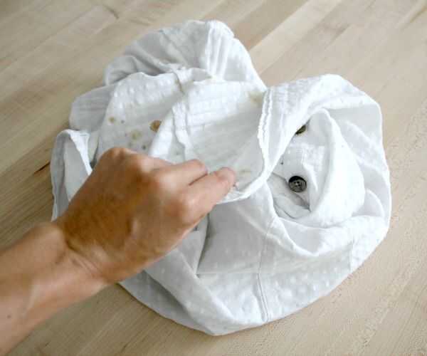 Tan pronto como sea posible después de la tinción, retire su artículo de la ropa y vuelta adentro hacia fuera.