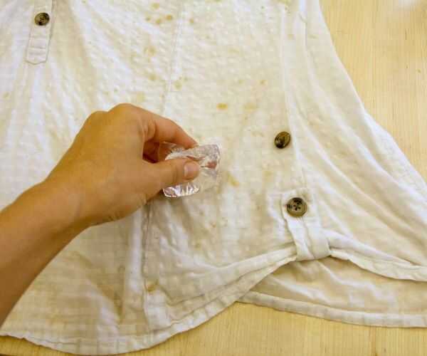 Diseñar su ropa. Verter o exprimir un poco de detergente de lavandería en cada área manchada y todos ellos dan un masaje suave, en el detergente.