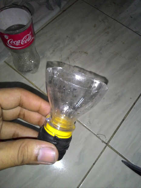 esto es un embudo hecho de una bolsa.Paso 1: Hacer el embudo Tomar una bolsa y cortar la esquina.Paso 2: Utilizando el embudo Poner la esquina que se cortó justo en el labio de la botella y pobres líquido lo que desea.