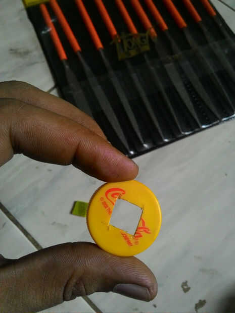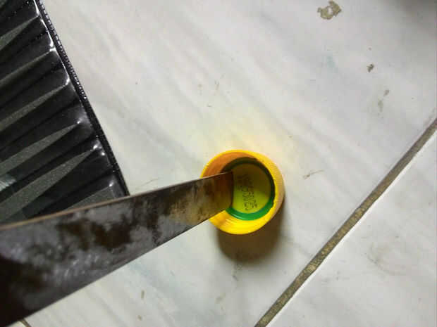con cincel corte aproximado de mismo tamaño orificio en ambos de los tapones de botellas.