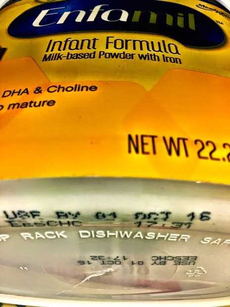 El Gobierno Federal informa que, "la FDA requiere solamente las fechas de vencimiento en alimentos infantiles y fórmulas infantiles. Otros productos alimenticios es voluntario". Si es así, entonces por qué es, cuando que previamente (05/08/2015) a tres diferentes tiendas de abarrotes, revisé fórmulas de bebé, Enfamil, Similac y Gerber. Mirando cuidadosamente las etiquetas de los productos y ninguna de las fórmulas de bebé tenía la palabra "Vencimiento" en ellos. En cambio, la Enfamil tuvieron el "Use By" fecha, Similac "Use By" y Gerber el "Best By". Creo que la FDA tiene que ser honesto con los consumidores.