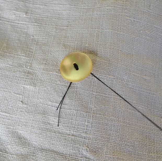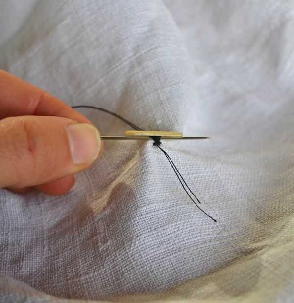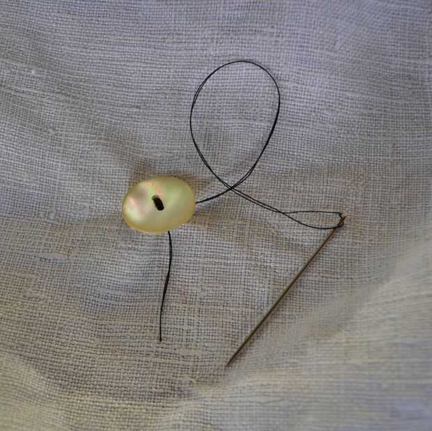 Que introduzca el hilo entre el botón y la tela, en el cosido que hiciste.
