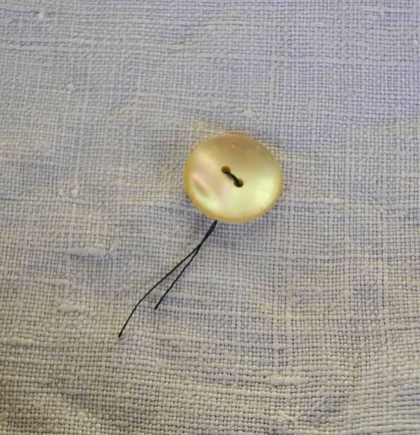 : No coser el botón demasiado TIGH a la tela deje un pequeño espacio entre el botón y la tela, por lo que el ojal eventualmente podrá caber allí.