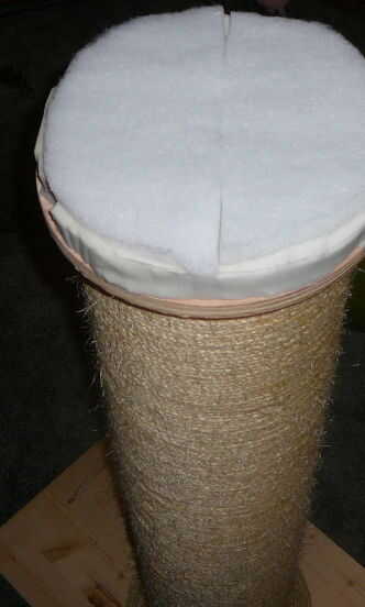 Cubrir con cualquier tela o alfombra que te gusta. Usé una alfombra de baño de algodón que mis gatos ya adoptados para dormir.