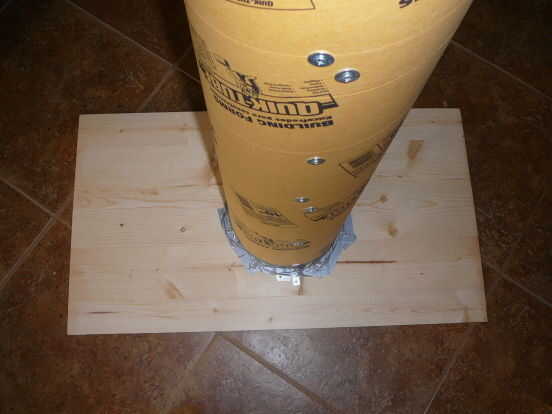 Mezclar aproximadamente tres libras (¼ cubo) de yeso y verter. Espere unos minutos hasta que seque el yeso, luego otro tres libras de la mezcla y agregarla. (Agregando el yeso un poco a la vez, preservar el sello débil de la cinta. Si añade demasiado peso de yeso líquido al mismo tiempo, la cinta le dará forma y fugas de.)