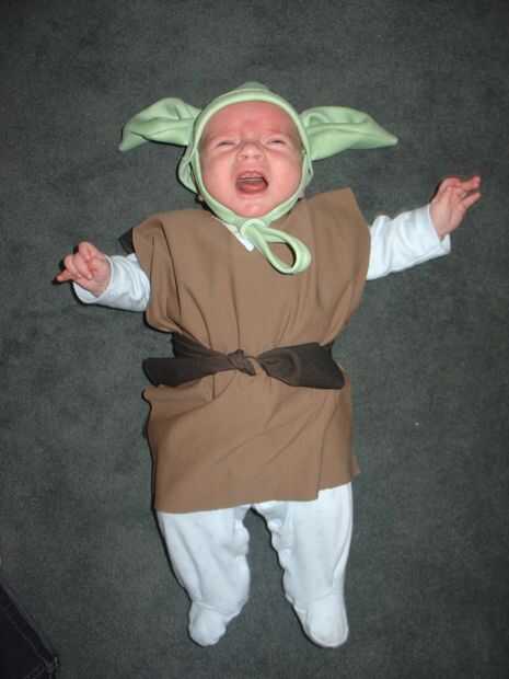 después de morir el material formó un sombrero con orejas de "Conejo" para el bebé Yoda.