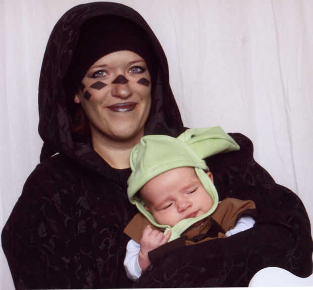 Barriss Offee: Oh cómo mi traje era fácil. Negro del traje del año anterior. Negro ropa, negros de gorrita tejida... en la capilla. Sombra de ojos verde aplicado en toda la cara como blush... negro diamantes eyeliner para el toque final!