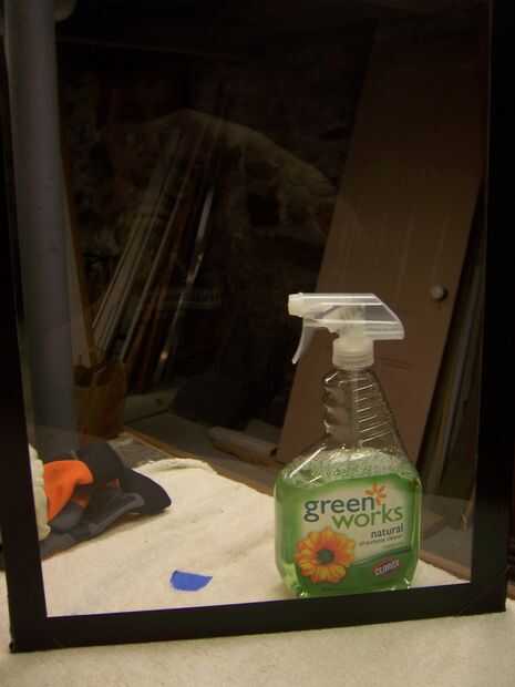 Después, usé limpiavidrios en ambos lados para limpiar por lo que es brillante. Te recomiendo no rociar la aspiradora cerca de la cinta; sólo en caso la cinta se hace caldoso y sale.