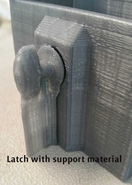 Asegúrese de preguntar sobre la proyección en la parte superior del agujero. Por suerte, cortadoras realizar la gcode en la periferia de cada capa como un paso continuo de impresión. Esto significa que conforme las capas van acercando más y más a la parte superior del agujero, se imprime la capa como un lazo que tiende a bombeo un poco más y hace un poco más gordo pero más auto capa soporte. Así que sí, la proyección horizontal a la derecha en el centro del agujero acerca pero es ayuda por 45 grados paredes conectados a él. Por desgracia, perder un poco de separación ya que este abultamiento está en el espacio entre la articulación giratoria y el agujero. Experimenté con este espacio y 500um es fina Pla pero la separación está un poco apretada para PLA-woodfill.