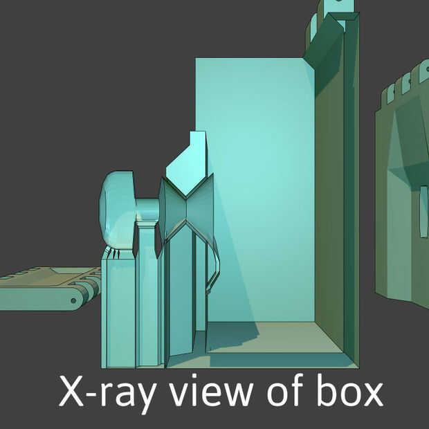 El diseño se basa en un eje central, que es de 2, conos de 90 grados apuntando el uno al otro que se cruzan en sus puntas para formar una forma de reloj de arena. El eje se encuentra entonces en un agujero que tiene la misma forma, pero con separación 500um en cada lado. La forma biselada del agujero a través de la pared es similar a la manera de la parte de perforación a través de las paredes de cada lado. Para mantener el eje fuerte, disminuye a un diámetro mínimo de 5mm. Puesto que el eje es más amplia en cada dirección no puede empujar o tirar de ella. Porque el eje y las paredes del agujero que se encuentra, son todos de ángulos de 90 grados son muy fuertes y en esta orientación todas las pistas están a 45 grados de la vertical. En este modelo el pestillo es horizontal pero una orientación vertical funciona bien también.