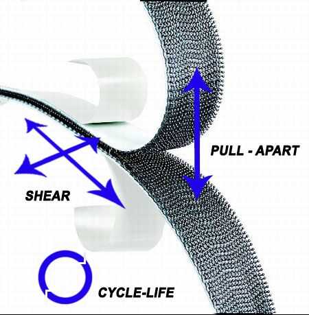 Resistencia de pull-apart mide cuánta fuerza por unidad de superficie de velcro que se necesita para separar dos piezas aparte de uno a. Generalmente en cualquier lugar es de 0.8 - 2 psi para ambas versiones.