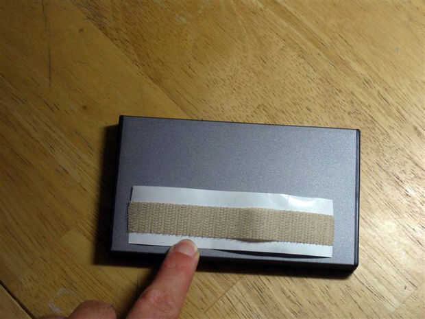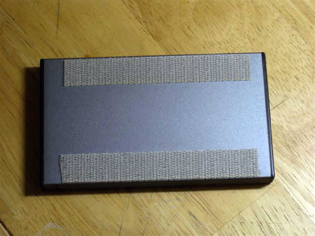 Por lo tanto, utilice el lado del gancho del velcro en el disco duro y al lado de aro suave en la computadora portátil sí mismo.