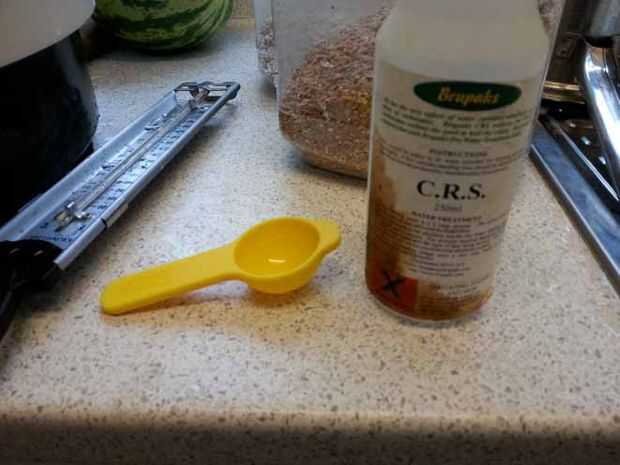 Tratamiento del agua es complicado y a menudo no tan necesaria como algunos lo sugieren. No entro en el cálculo aquí como si su su primera vez ignorar sólo tratamiento de aguas. Es complicado y hay preocupaciones más importantes con le primer colado. La buena noticia es que una vez que has hecho el cálculo es el mismo cada vez (suponiendo que el mismo tipo de cerveza). Para mi el agua necesito 10ml CRS que se vierte en la caldera. Tal vez un tema de un Instructable futuras...