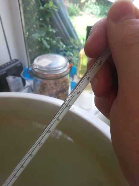 Yo a continuación, calentar el agua. Para triturar correctamente los granos, que es cuando los carbohidratos se convierten en azúcares fermentables y no fermentables, que necesitan estar cerca de 66 C. Ya empiezan a temperatura ambiente el agua debe calentarse a C 76-77.