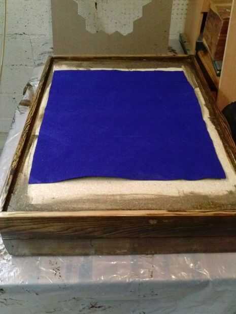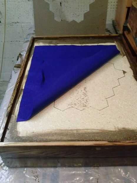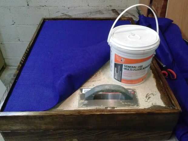 Felted el interior completamente y debajo de la pizarra, con un adhesivo de uso general. Se debe utilizar con moderación o se purga a través del fieltro. Así que utilicé una llana adhesivo para asegurarse de que el derecho sobre fue utilizado.