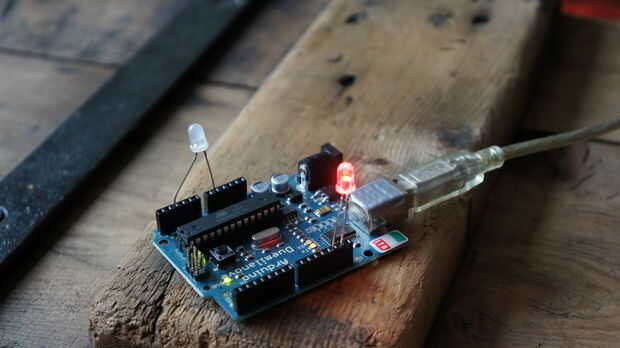 Usted puede saber que un LED emite luz cuando se pone la cantidad de voltios en los cables de la derecha. Lo curioso es que también funciona al revés. No la conduce, no funciona cuando pones los cables al revés. Pero lo que funciona es que cuando usted iluminar un LED dará la actual. Es una corriente muy pequeña pero lo suficiente para un Arduino detectar.