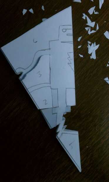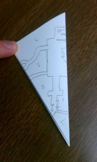 - Cortar las piezas difíciles primero. Hacer un poco de un mental plan de cómo vas a hacerlo. Puede ser útil numerar cada parte en el orden que se les corte. (Ver foto)
