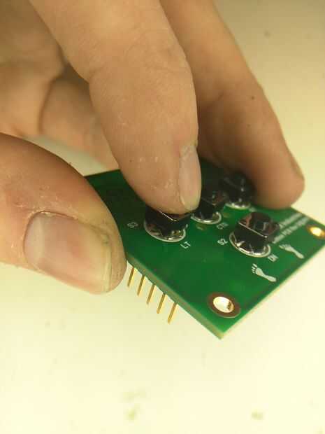 Estañó el cojín, llevó a cabo el botón de encendido y soldadas. Tenga en cuenta la dirección de la soldadura en los botones, si alguno se da vuelta 90° será siempre en lugar de un botón.