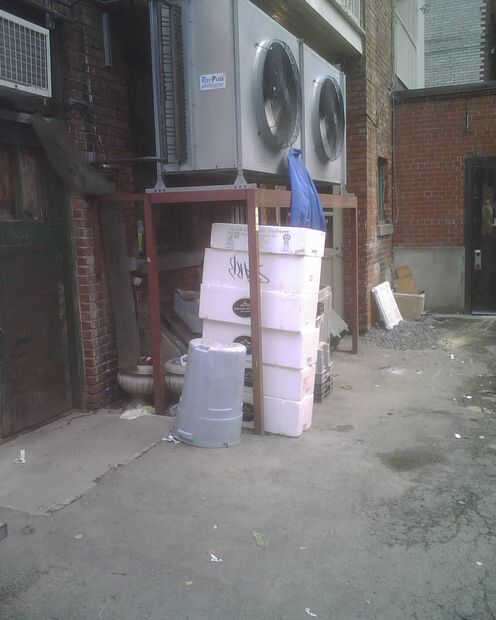 Las cajas de pescado de espuma de poliestireno se pueden encontrar en los contenedores de las tiendas de pescados y mariscos. Se utilizan para enviar gran salmón, etc. y generalmente se tiran atrás. Asegúrese de comprobar si hay fugas, como deben ser a prueba de agua.