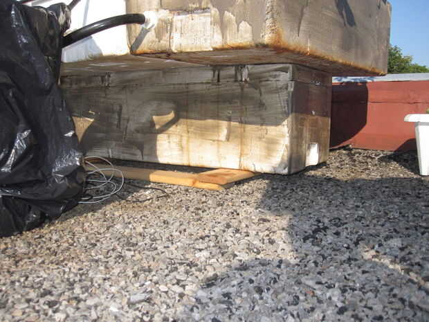 Pila 3 cajas encima de la caja 4. Debe ser perpendiculares a la caja de 4 º, con las salidas de desagüe hacia el depósito.
