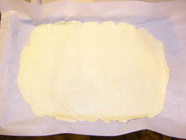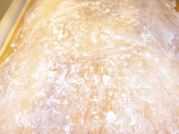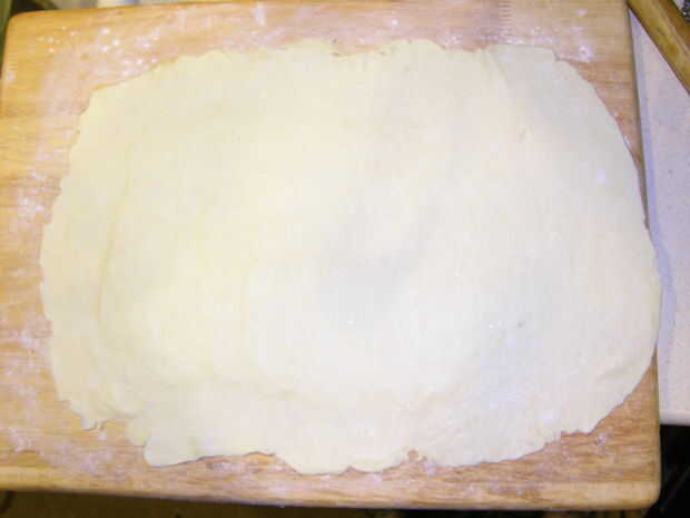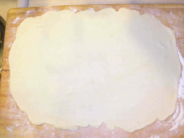 Rodillo sobre una superficie enharinada en un rectangular de 12 X 10 pulgadas.