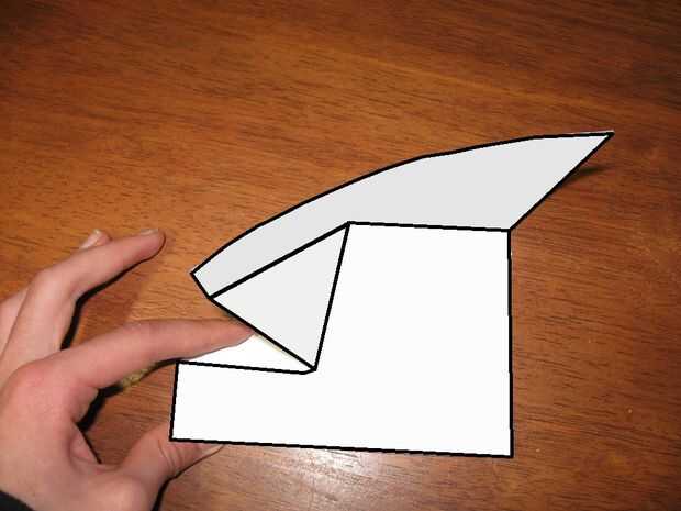Para convertir el triángulo posterior en un hacia arriba frente a parada de espalda tenemos que invertir los dobleces para producir tres dobleces de valle junto con la tapa de una montaña. Para ello, doble el triángulo posterior en el centro, media hasta que el deslizamiento es el papel doblado en el interior.