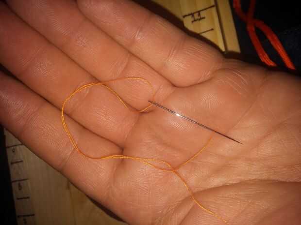 Después de enhebrar la aguja, asegúrese de anudar sus cabos juntos.