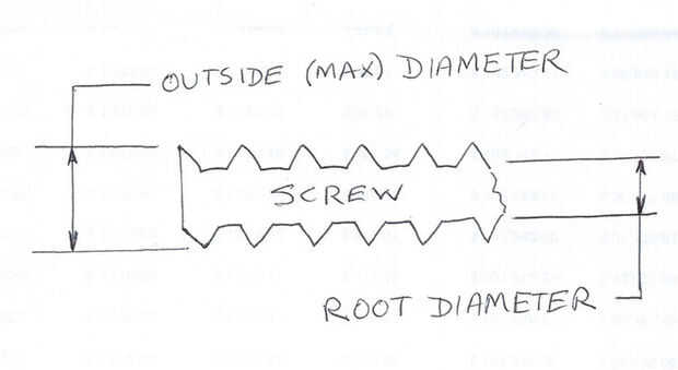 agujero. Este sería el "diámetro de la raíz" del tornillo. Sin duda, el pasador puede