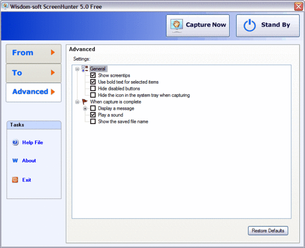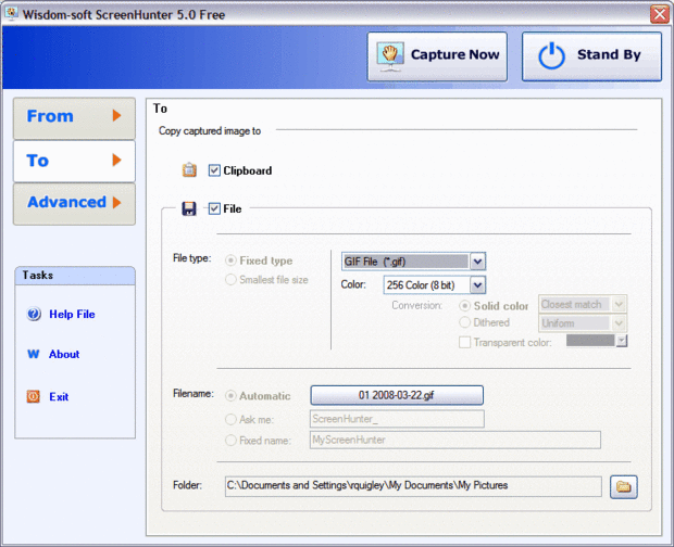 Haga clic en la ficha para configurar donde se guardarán tus capturas de pantalla. Puede copiar al portapapeles, guardar en un archivo o hacer ambas cosas, o tampoco supongo, pero que no parece muy útil.