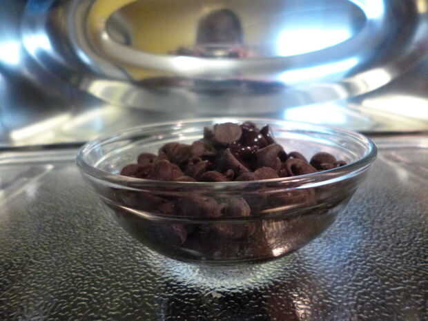 Microondas durante 30 segundos en lo alto y remover para eliminar grumos. Repita hasta que el chocolate se derrita.